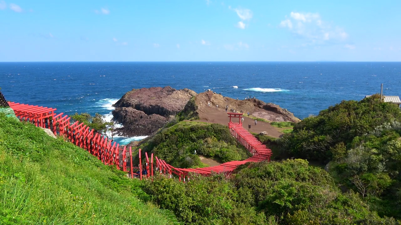 長門市には、山口県でもっとも古い歴史をもつ長門湯本温泉や、全国に21か所しかない国民保健温泉地に指定されている俵山温泉など「五名湯」と呼ばれる5つの温泉があります。また、「仙崎イカ」などの新鮮な魚介類や「焼き抜きかまぼこ」などの水産加工品、やきとりが全国的に有名で、グルメの宝庫でもあります。対馬海流の影響を受けるため気候は比較的温暖で、山間部を除き、積雪することはほとんどありません。